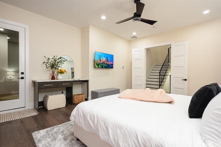 ❤️‍🔥 The Horizon — Experience elevated city living in the heart of Rice Military HTX. This refined 4-level 3,200 sqft retreat is thoughtfully designed for your stay, this home blends upscale comfort with the energy of Houston’s most vibrant districts just minutes from Washington Ave dining, Buffalo Bayou Park, The Heights, and Downtown.