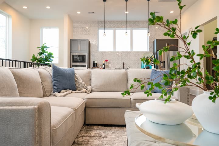Sink into plush seating in the living room while enjoying a 75” Smart TV, or gather around the large dining table designed for shared meals and memorable evenings.