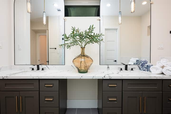 ✅ Master king suite with spa bath, soaking tub, glass shower, and walk-in closet