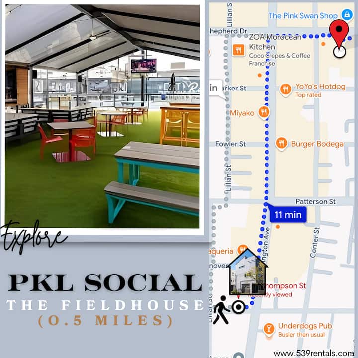 ✔︎ PKL Social (pickleball courts & sports bar) – 0.3 mi / 6-min walk