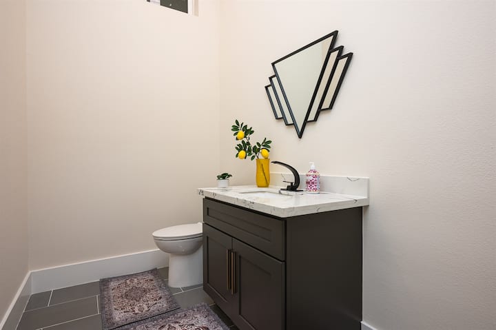 A stylish powder room completes this floor.