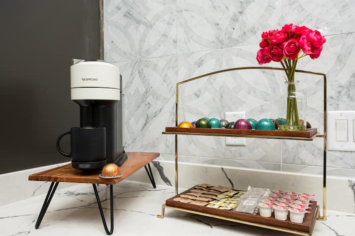 ✅ Fully equipped Monogram chef’s kitchen with Nespresso, cookware essentials, blender, and full dining setup