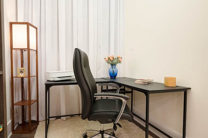 ✅ High-speed WIFI, dedicated workspace with ergonomic chair & printer